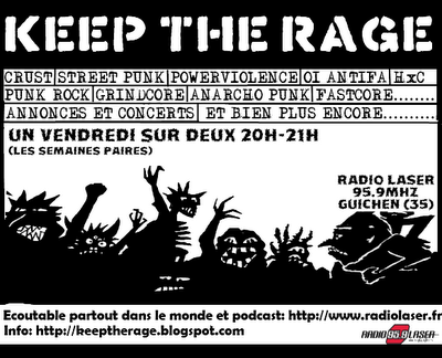 Comme il n’y aura pas d’émission, nous vous suggérons très fortement de visiter le site de Keep the Rage, une émission de punk rock, streetpunk, anarcho punk, punk mélo, oi! antifa, crust, HxC , grindcore, fastcore, powerviolence (and many more!), qui diffuse aux ondes de radio laser à Guichen en France. Ça vaut le détour!